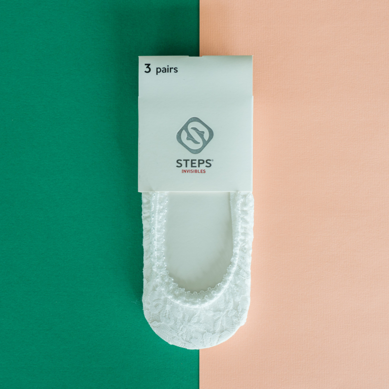 3-pack kousenvoetjes in kant. (zitten per 3 paar verpakt)